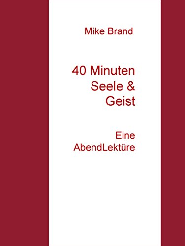 Do you know about Download 40 Minuten Seele & Geist: Eine AbendLektüre PDF? do you enjoy reading it? yes, this book there are various kinds of benefits one of which is to foster a sense of interest of readers to read this book. this book can add to the knowledge that is wide enough although sometimes we get that knowledge indirectly. sometimes in 40 Minuten Seele & Geist: Eine AbendLektüre PDF Online there will be something unexpected when reading it, therefore this book becomes a best seller. because the author always gives surprises in every writing of his essay. If you are still confused about how to get 40 Minuten Seele & Geist: Eine AbendLektüre, you can contact us and check the book now. because you will be helped to skip the step to get this book.